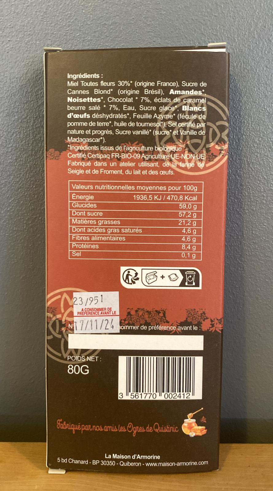 Nougat au chocolat & éclats de Salidou « caramel au beurre salé » 80 g