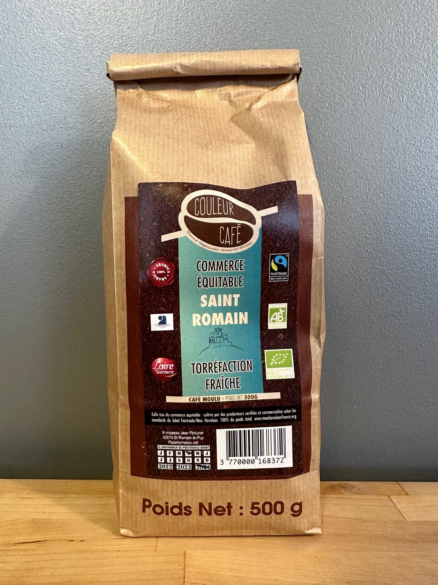 Venez découvrir notre café de chez couleur café moulu saint romain 500g