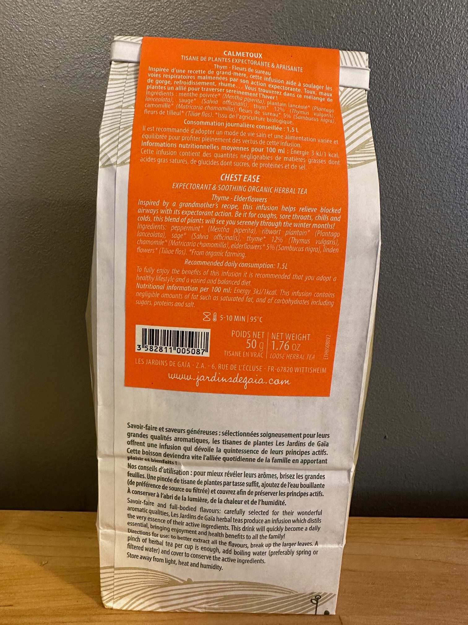Infusion de plantes Calmetou, thym et fleurs de sureau.