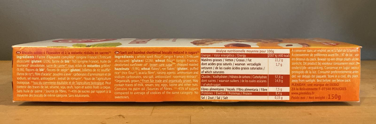Biscuits sablés à l’épeautre et à la noisette allégés en sucres. 150 g
